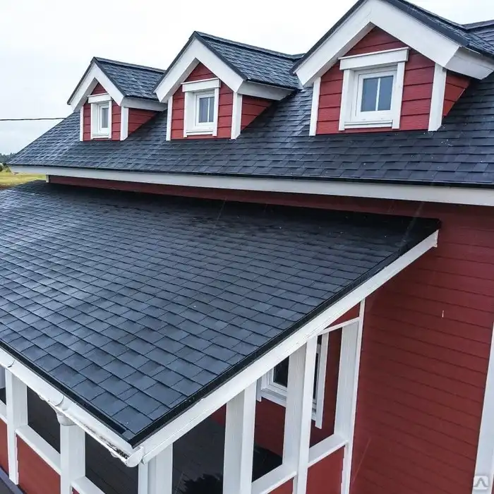 Гибкая черепица может применяться не только на малоэтажных жилых зданиях, но и при строительстве административных, жилых многоэтажных и других типов зданий.